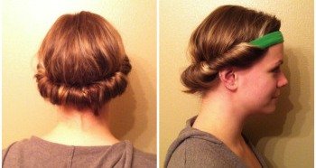 - Take a section of the hair and tuck it in by passing it through the head band.